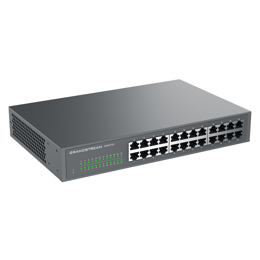 Switch Grandstream GWN7703 No Administrable 24 Puertos Gigabit Con Crossover Automático MDI MDIX Gabinete Metálico Para Escritorio O Rack 19 1U.